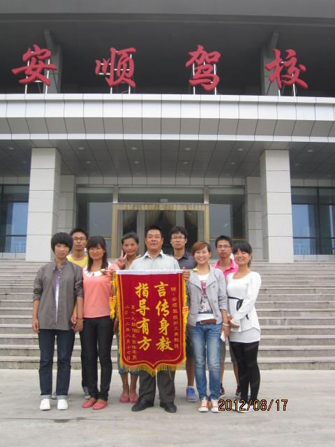 2012年8月17日,我校老校區(qū)小車教練員鄭衛(wèi)聿收到了學(xué)員贈(zèng)送的錦旗,錦旗上寫道:“言傳身教,指導(dǎo)有方”。本期,鄭教練班中所有學(xué)員都順利地通過(guò)了考試,為表示感謝學(xué)員們到我校贈(zèng)送了一面錦旗。