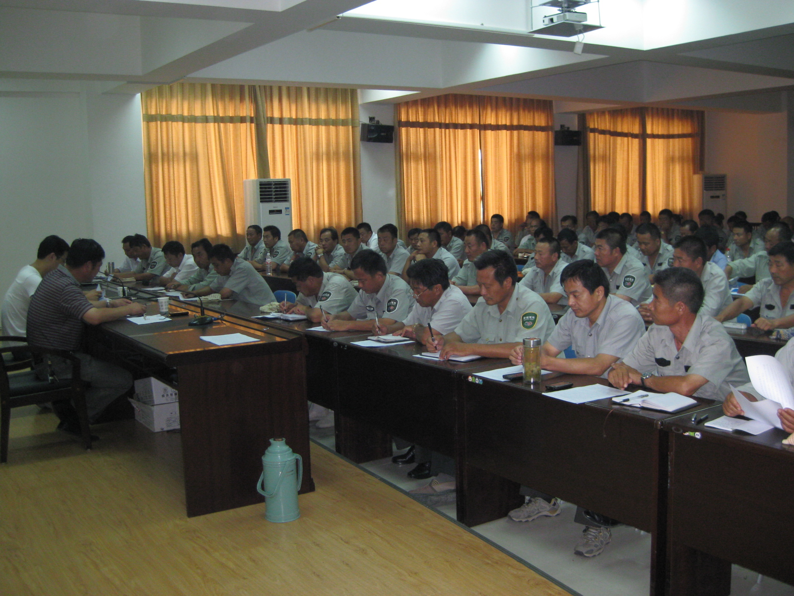 會上,兩位校長從現(xiàn)階段駕校工作情況、今后的工作思路和對大家的工作要求等幾個方面分別作了重要講話。要求每一位員工都要恪盡職守,改進工作方法,提高效率,要充分認識到目前是駕校發(fā)展的重要階段,要時刻保持緊迫感和責(zé)任感,堅定信心。會中特別強調(diào),現(xiàn)在正處于夏季高溫期,要“以人為本”,避開高溫合理安排好學(xué)員的訓(xùn)練時間,并配備了急救藥品,給學(xué)員創(chuàng)造一個安全舒適的學(xué)駕環(huán)境。